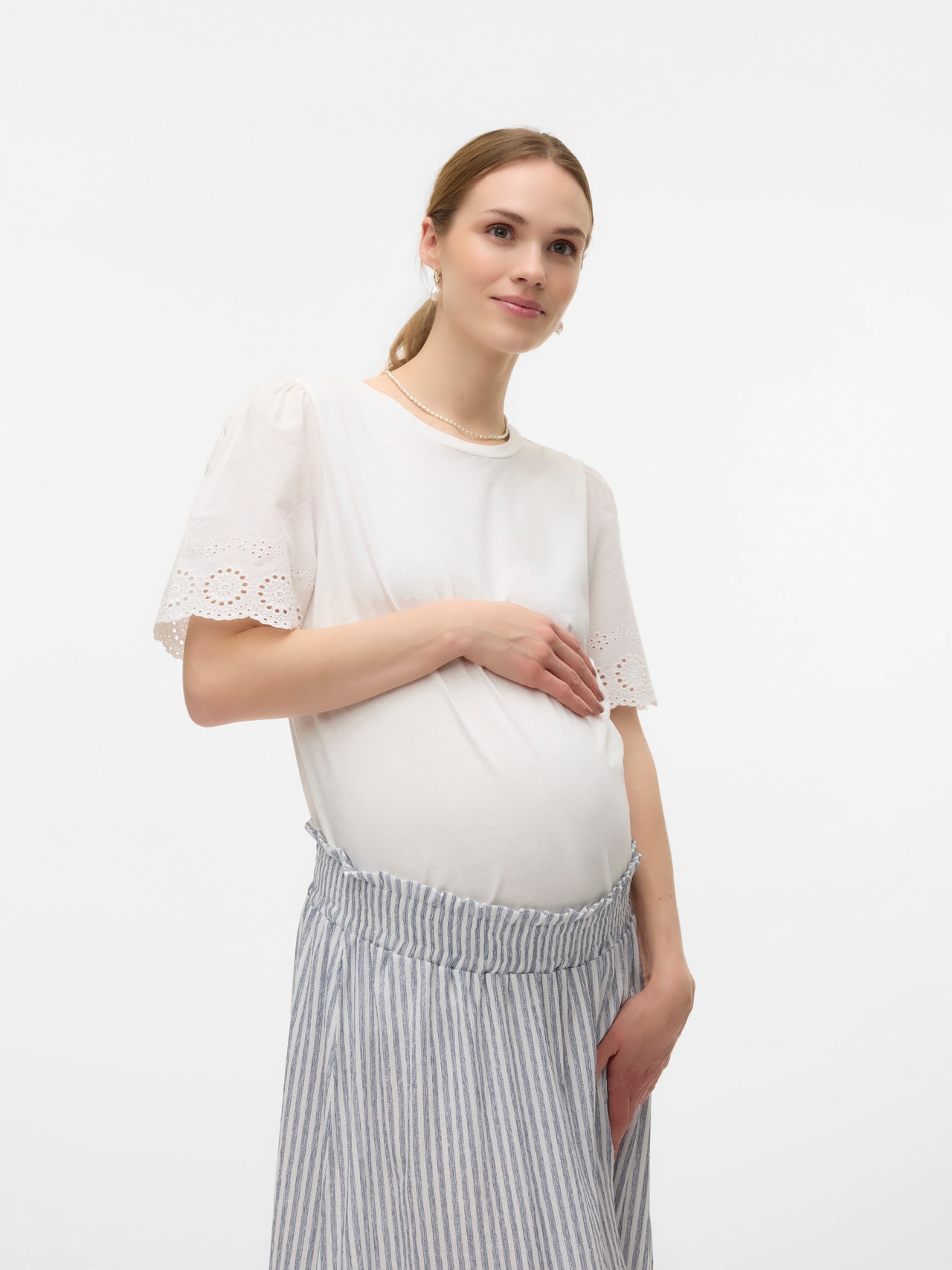 - Produkttype : T-shirt - Neck : O-hals - Ærme : Korte ærmer - Detaljer : Blondedetalje - Pasform : Regular fit