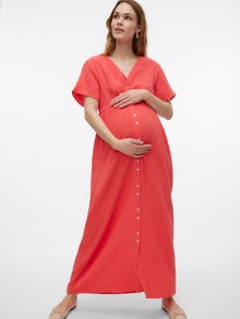 Bring Komfort und Farbe in deine Garderobe mit schönen Kleidern, die deinen Bauch stützen und immer passen, egal ob im Alltag oder zu einem festlichen Anlass.. - Produkttyp : Kleid - Hals : V-Ausschnitt - Ärmel : Kurzarm - Verschluss : Knopfleiste - Länge/Größe : Knöchellang - Passform : Normal geschnitten