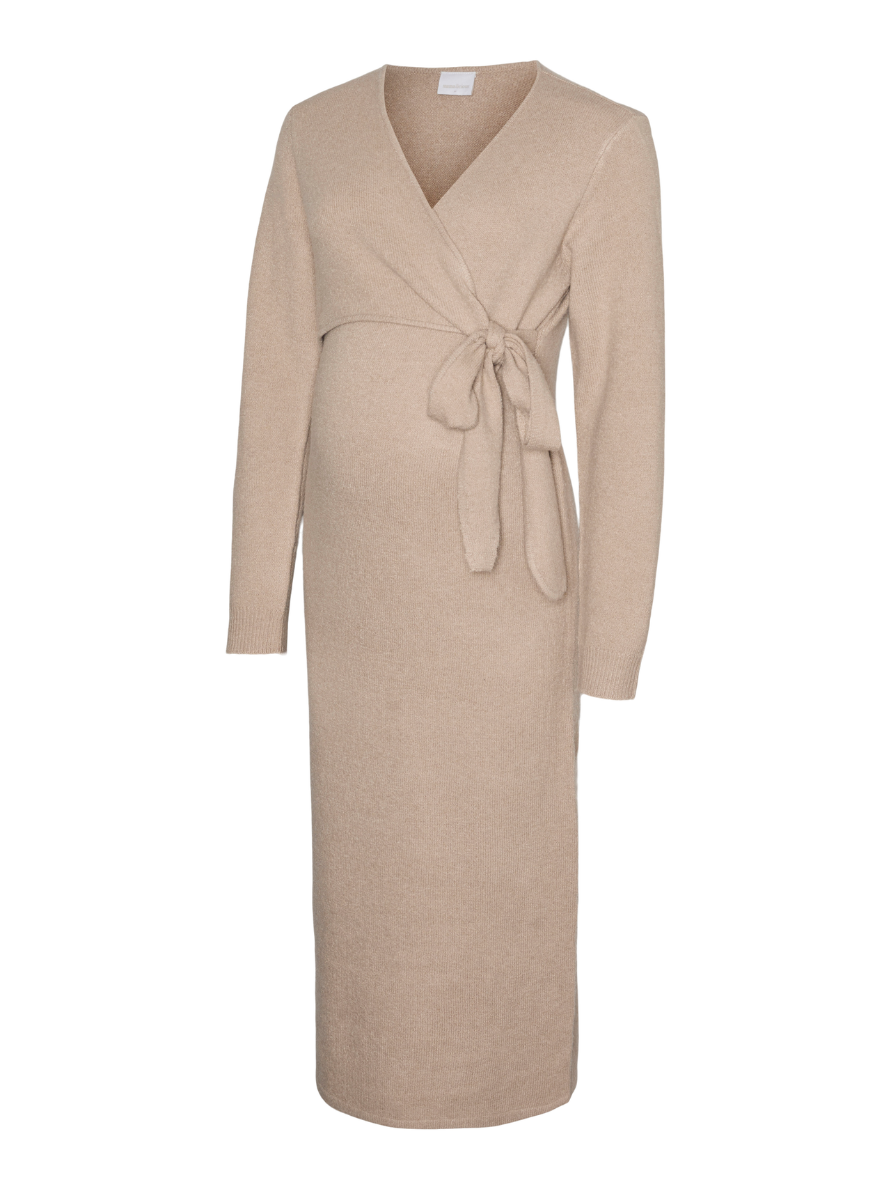 - Details : Gürtel in der Taille, Schnittlinie über dem Bauch, Abnäher, Knoten-Detail, Stilllage unter einem Wickeleffekt
