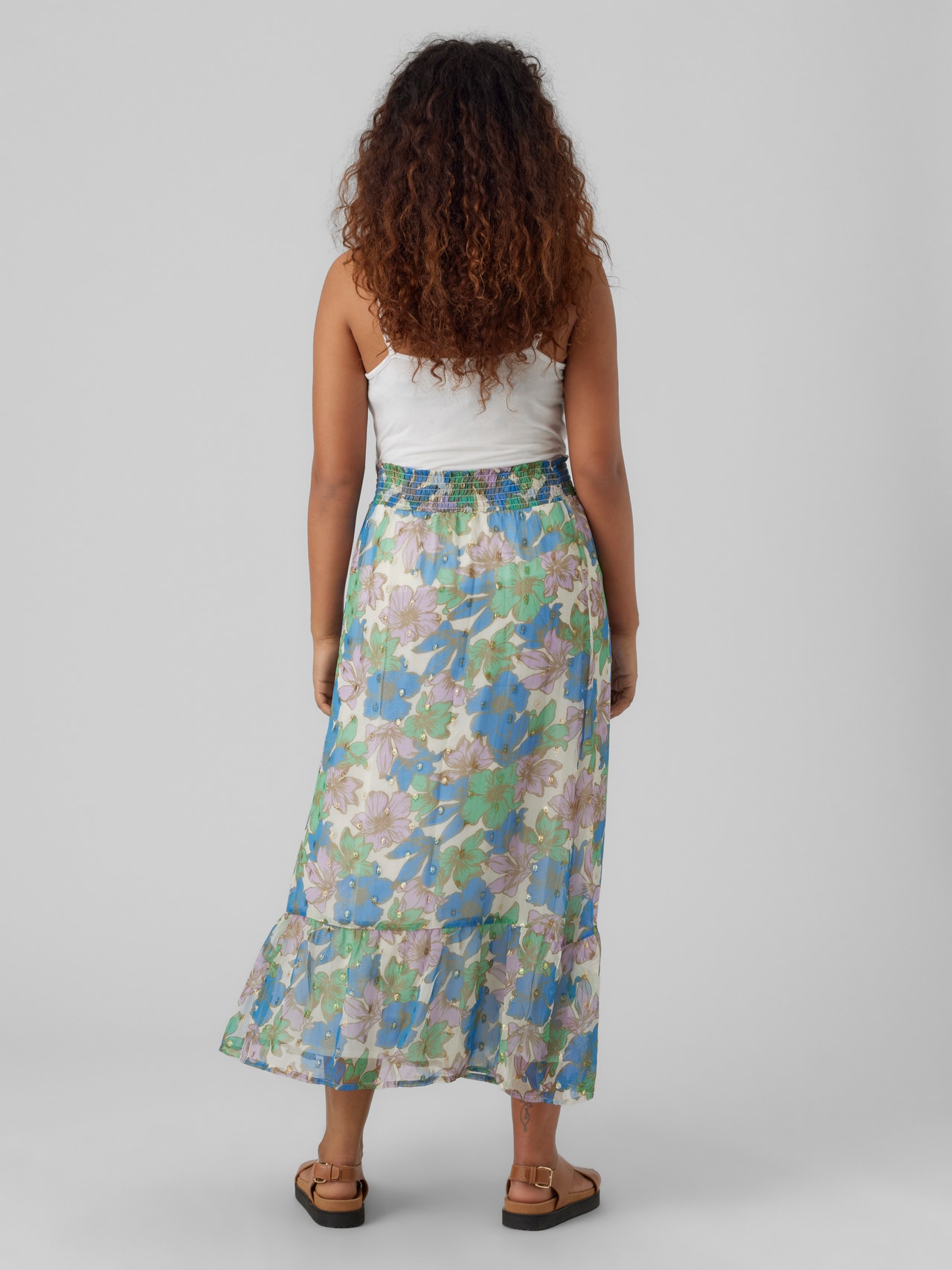 LDS MATERNITY HW MIDI SKIRT SMOCK AT WAIST SMALL FRILL DETAIL VISCOSE LINING DETAIL WITH CUTLINE AND GATHERINGS IN SKIRT MLBRIA QUALITY WITH NEW FOIL DETAIL. AOP FLOWER PRINT. Composition: 100% Polyester lining is viscose
