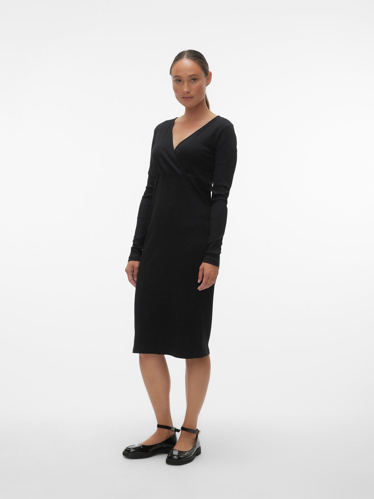 Bringe mit wunderschönen 2-in-1 Kleidern für Schwangerschaft und Stillzeit mehr Bequemlichkeit und Farbe in deine Garderobe.. - Produkttyp : Kleid - Hals : V-Ausschnitt - Ärmel : Langarm - Details : Stilllage unter einem Wickeleffekt - Passform : Eng anliegend