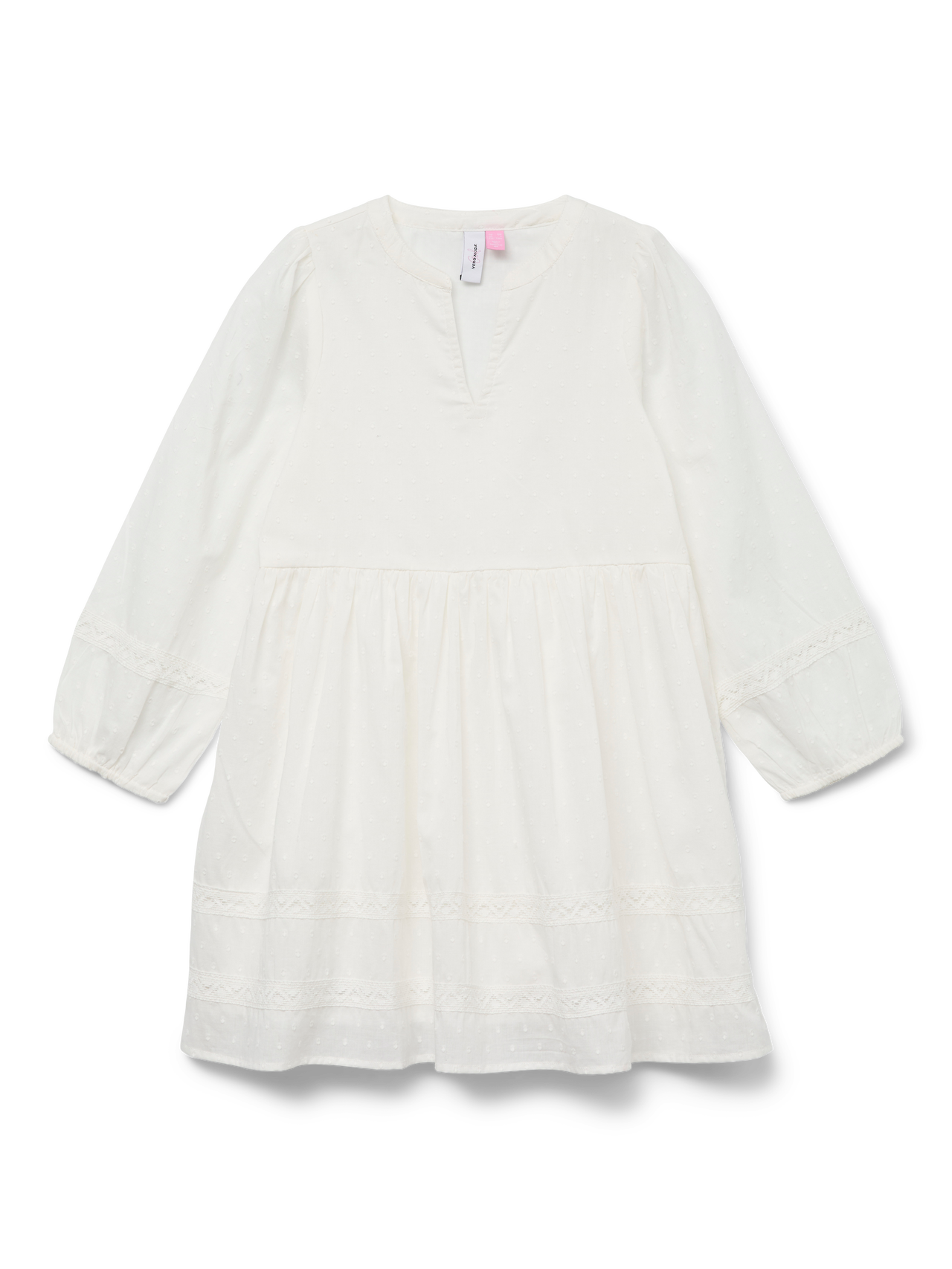 Du hast sie gefunden! Unsere Kleider für dein kleines Mädchen sind da. Die Silhouette ist schlicht und bequem und der Look ist verspielt, frisch und abenteuerlich. Dein Mädchen wird in diesem Kleid ohne Zweifel hinreißend aussehen und sich auch so fühlen. - Produkttyp : Kleid - Hals : V-Ausschnitt - Ärmel : Langarm - Ärmel : Ballonärmel - Manschetten : Gummizug am Handgelenk - Länge/Größe : Kurz - Futter : Ein Innenfutter aus Baumwolljersey sorgt für Komfort und Weichheit - Details : Spitzen-Detail - Passform : Normal geschnitten