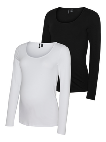 Aktualisiere deine Garderobe mit weichen und schicken T-Shirts und Oberteilen, die bequem sind und sich perfekt an deinen wachsenden Bauch anpassen. - Produkttyp : T-shirt - Hals : U-Ausschnitt - Ärmel : Langarm - Details : 2er-Pack - Passform : Slim Fit