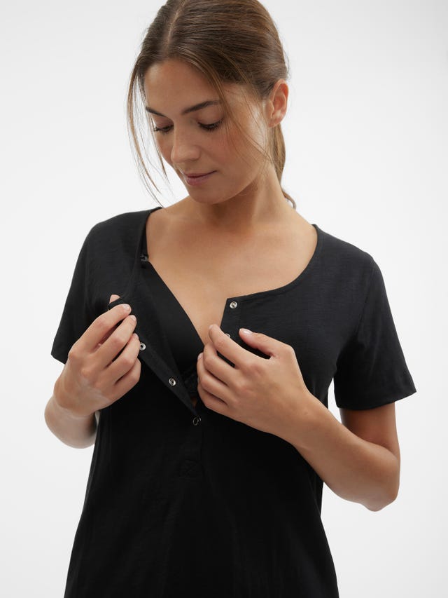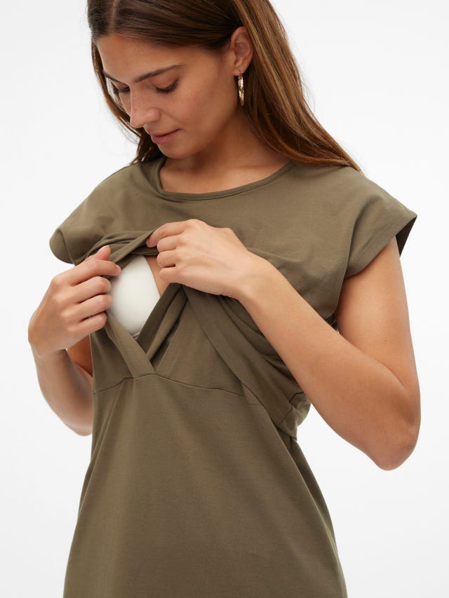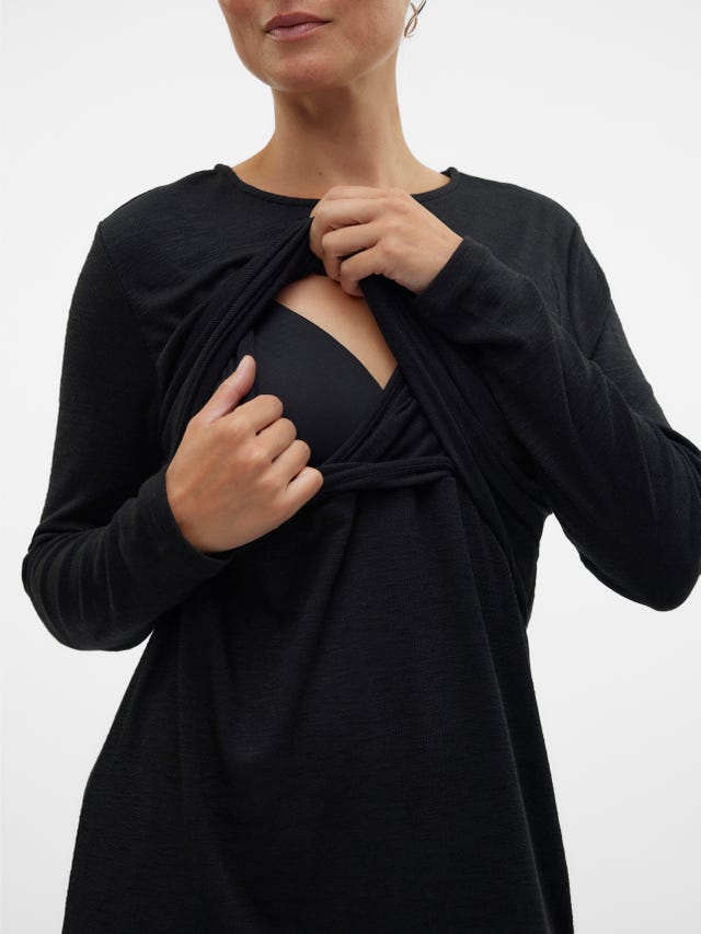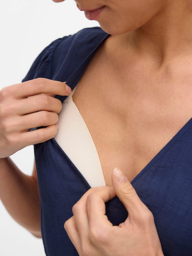 Whether at home or in public, if your little one is hungry, the last thing you want is to struggle with straps, snaps, buttons and bulky layers. That’s why all our nursing clothes have practical, easy-to-use nursing functions built in. Our nursing tops all have a hidden layer that offers your baby easy, yet discrete access. Simply unfasten or pull away the top layer to reveal the nursing layer beneath, pull aside and get comfortable with your baby. When you’re done, pull back in place and refasten any buttons or zips. The nursing layer doesn’t create any extra bulk but sits comfortably around your bust. Browse our up-to-date selection of stylish nursing dresses and breastfeeding tops and find your new favourites.