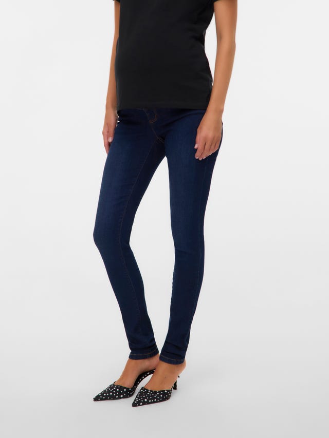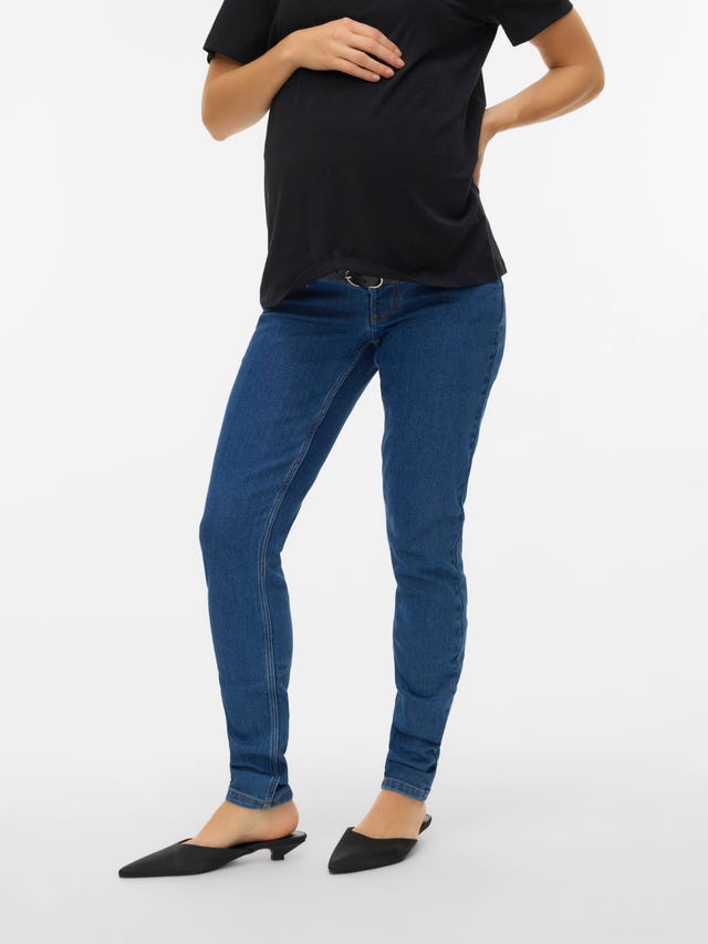 Just as with regular jeans, there are many factors to consider when searching for the perfect jeans fit that will carry you through your pregnancy. The fit and cut are key to finding the right pair of maternity jeans that are comfortable. Whether you prefer maternity jeans in skinny fit, slim fit, regular fit, nostalgic flared cuts, bootcut or trendy cropped jeans - once you found your fit and cut, you need to decide whether you want to wear the waistband under or over your baby bump. In our selection you’ll find maternity jeans with elastic waistbands that sit comfortably below your baby bump. The elastic on the inside of the waistband is equipped with a button and lets you adjust the waist to the size of your bump at any given point during your pregnancy. We also carry maternity jeans with a seamless bump band that fits perfectly over your bump and provides support for your growing belly. Or you can opt for low-waist maternity jeans with elastic panels that stretch with your growing baby bump. No matter what your style or preference, MAMA;LICIOUS has a selection that provides sleek and comfortable solutions that don’t miss out on style.