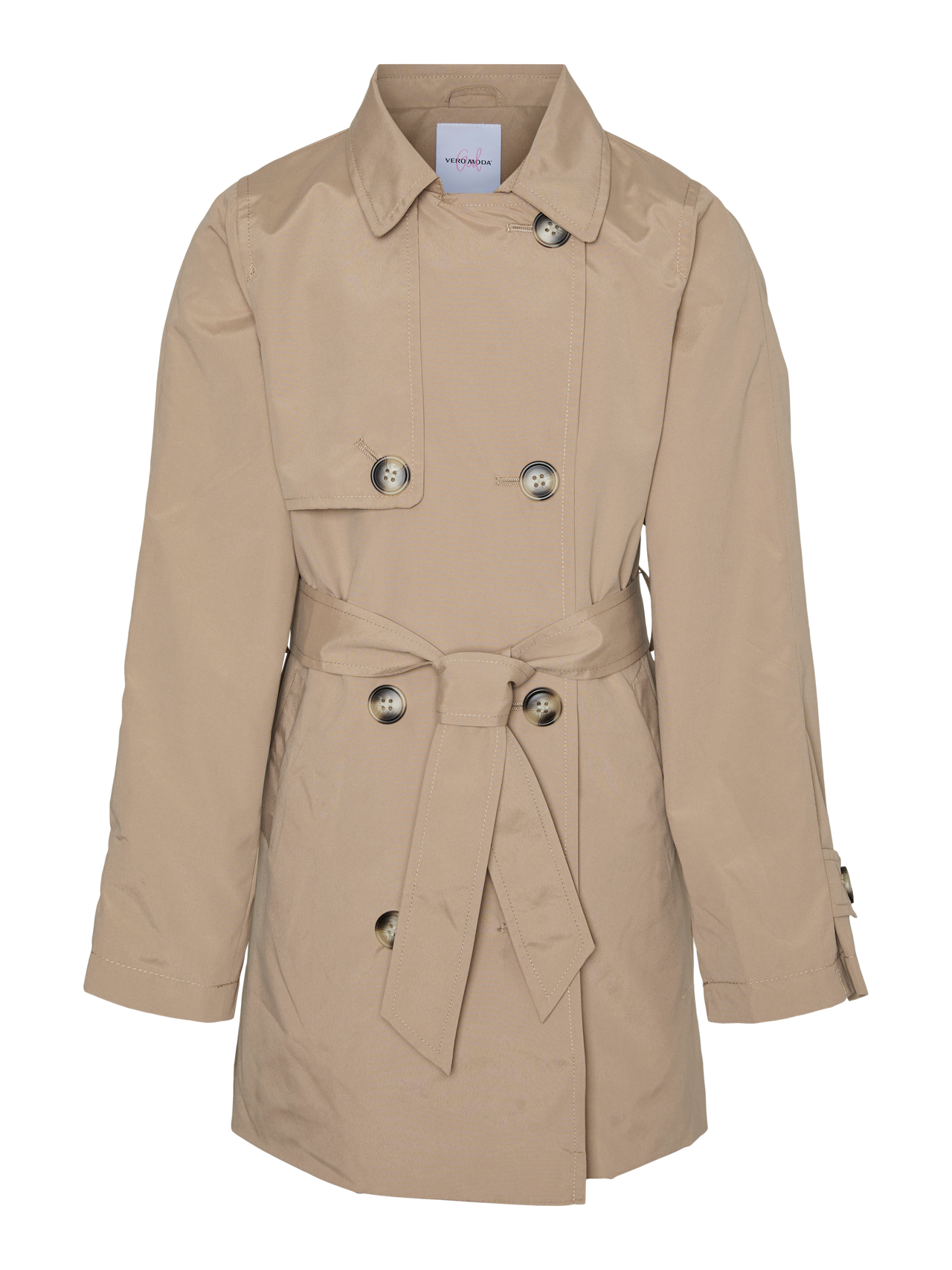- Closing : Double breasted button fastening, Belt fastening