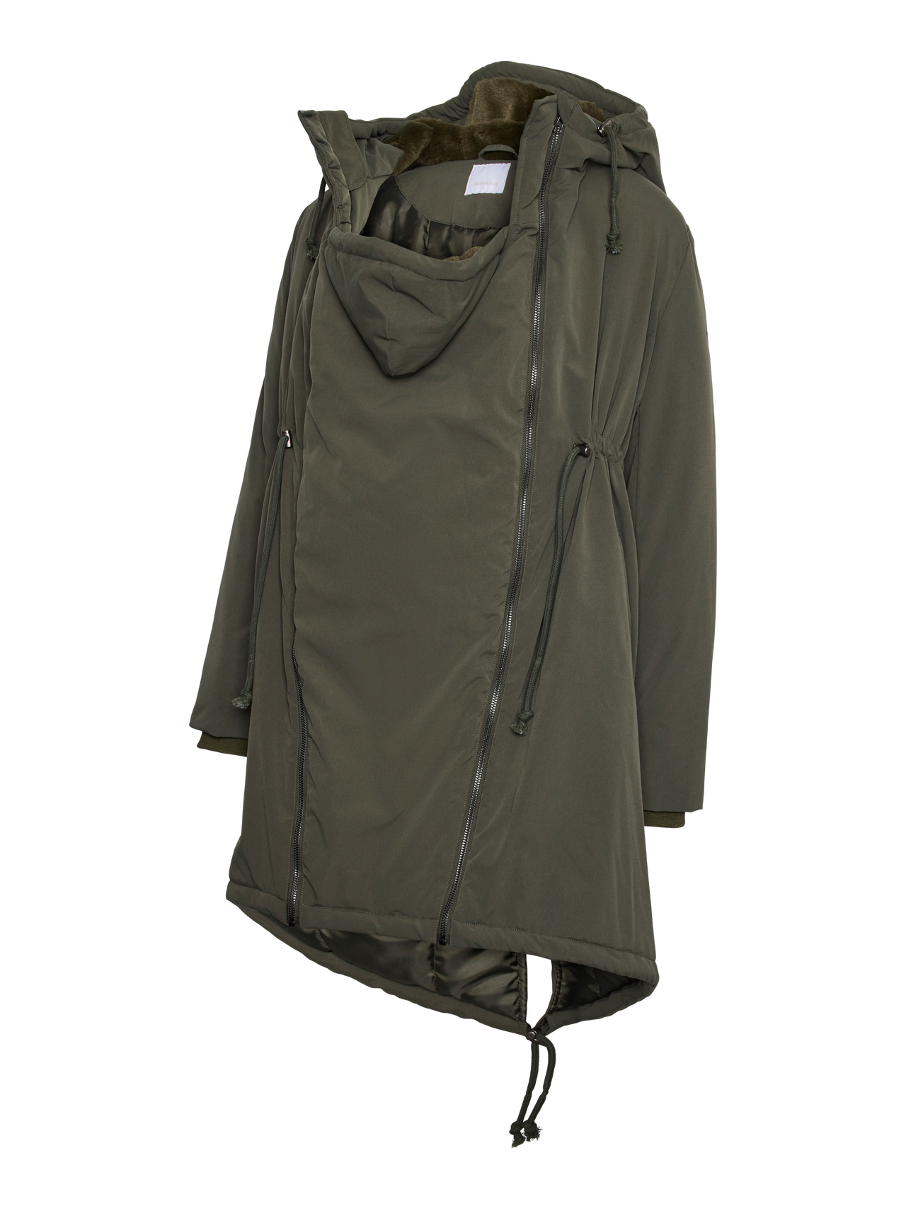 Prepare your wardrobe for a new season with a functional and fashionable 3-in-1outerwear style for pregnancy, post-partum for carrying your child and as a regular jacket. Use it during pregnancy by adding the panel or adjusting the fit; use it post-partum with the practical carry function for your baby; attach the carry panel in front to ensure space for a baby sling, baby carrier, or baby wrap, or wear it as a regular jacket and create a cosy, clean look.