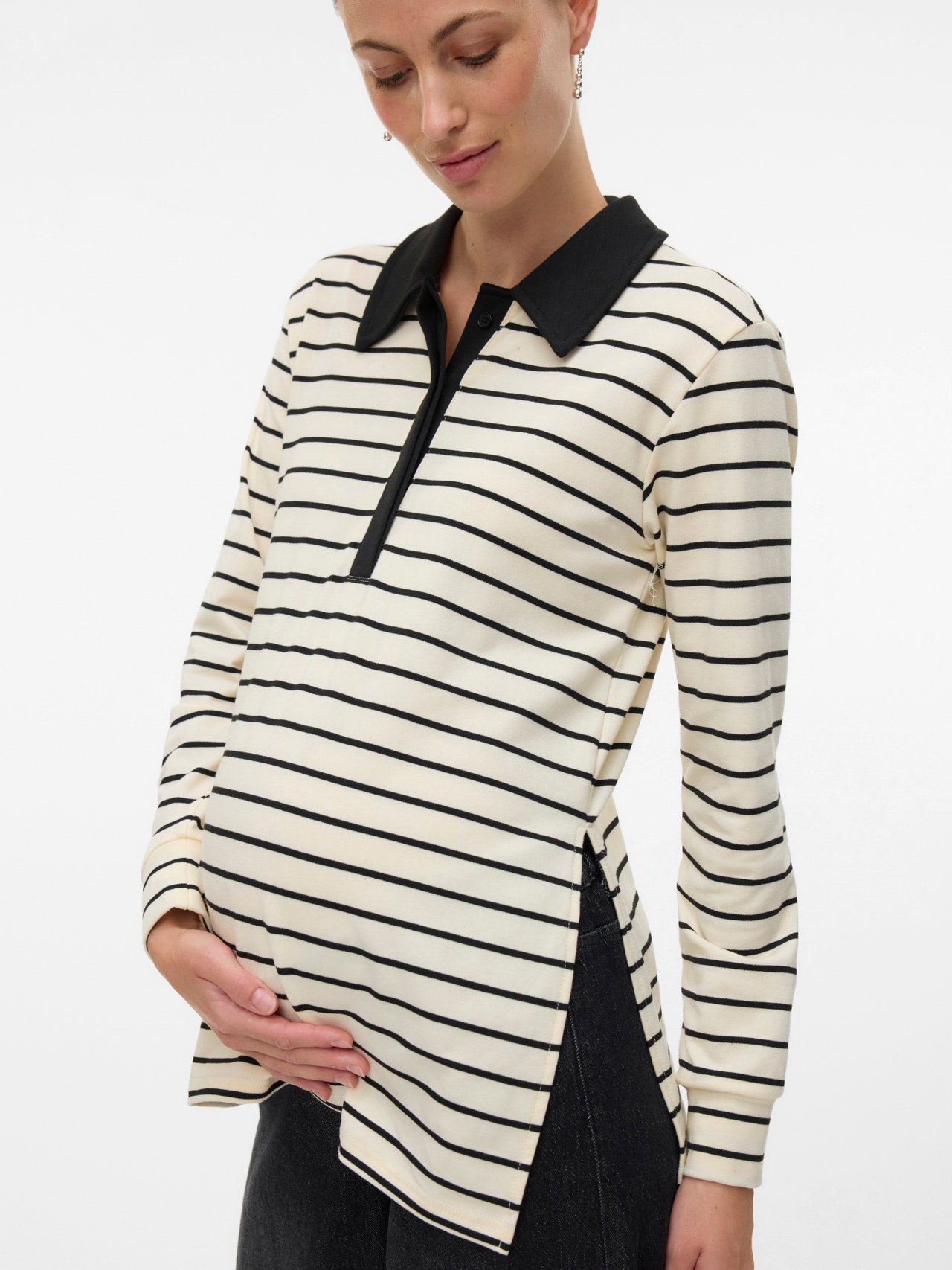 Renew your wardrobe with soft and chic 2-in-1 T-shirts and tops for both pregnancy and nursing. - Product Type : Blouse - Neck : Polo - Sleeve : Long sleeves - Extra details : Nursing function with button or zip fastening - Fit : Regular Fit