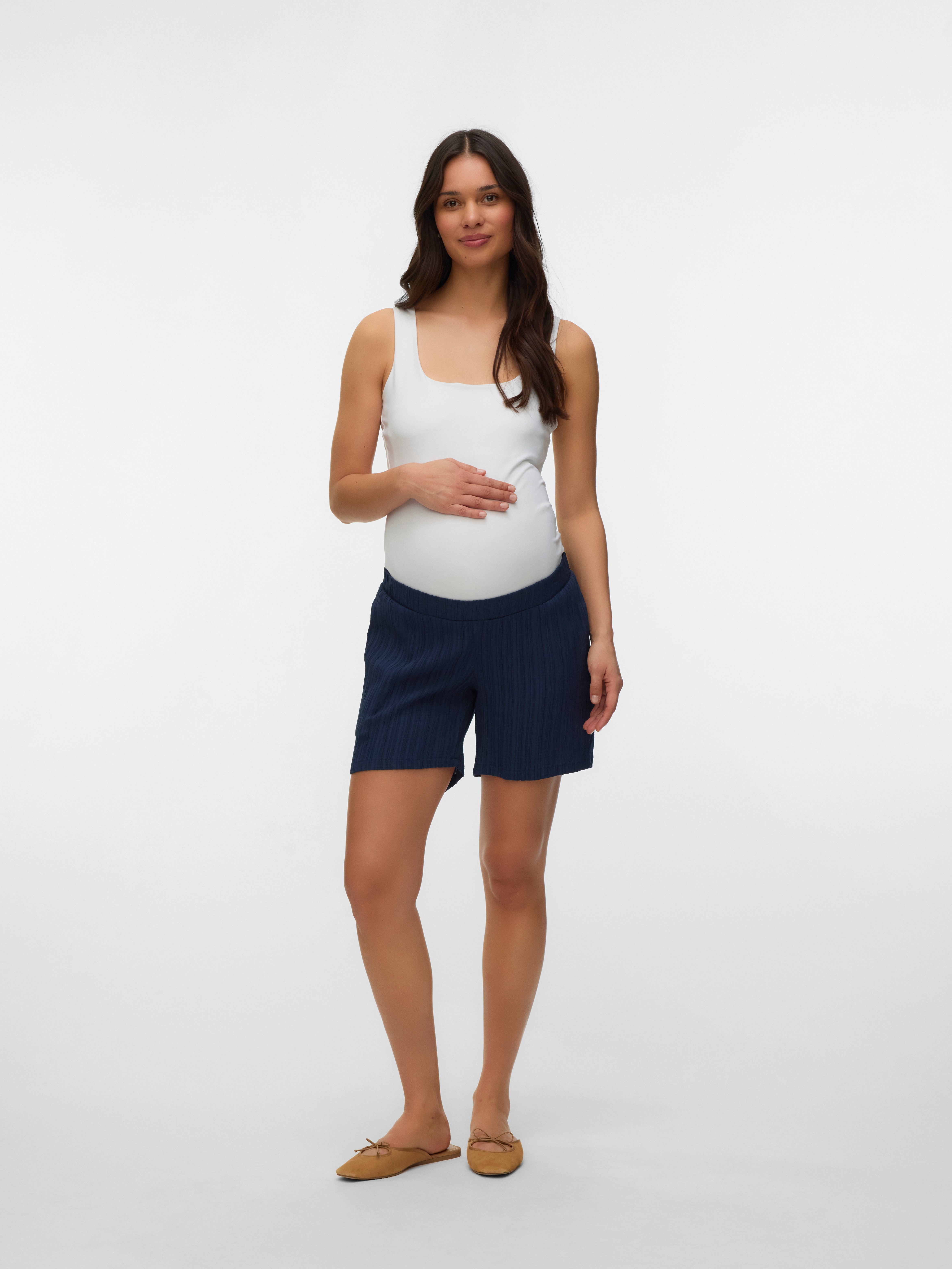 Create the perfect summer look with a wardrobe must-have - soft and airy shorts designed to fit through all stages of pregnancy, ensuring a timeless look no matter the occasion.