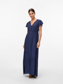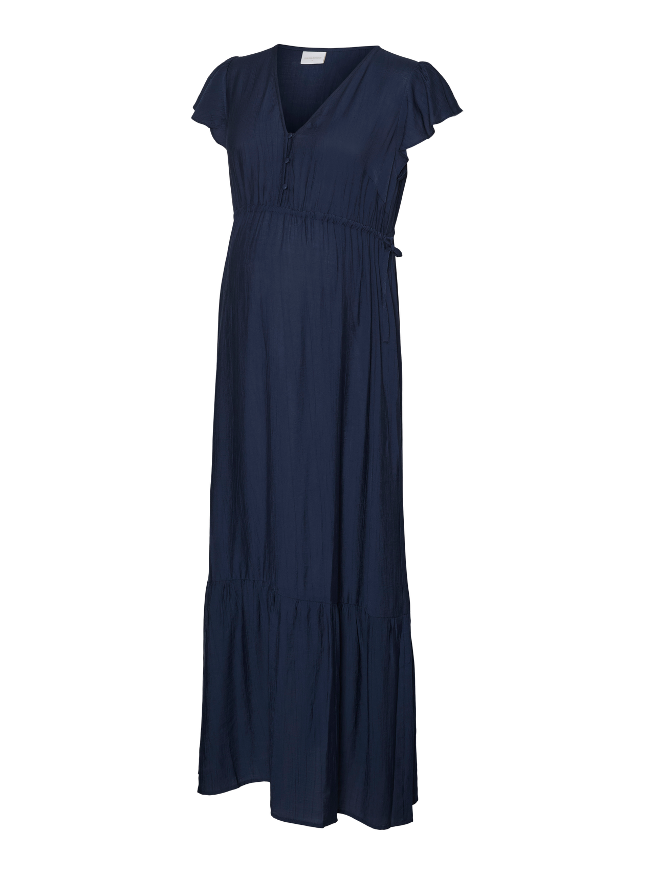 Add comfort and colour to your wardrobe with beautiful 2-in-1 dresses for both pregnancy and nursing. - Product Type : Dress - Neck : V-Neck - Sleeve : Cap sleeves - Closing : Button fastening - Length/Size : Ankle length - Extra details : Cutline above bump, Darts, Elasticated waist, Frills, Nursing function with button or zip fastening - Fit : Regular Fit