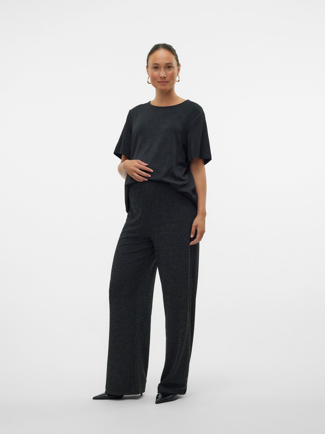 Create a stunning look with party styles that ensure comfort and elegance, perfect for both small and large celebrations all year round. - Product Type : Trousers - Extra details : Glitter detail, Bump band over the bump for extra comfort and support, Elasticated waist - Fit : Wide Leg Fit