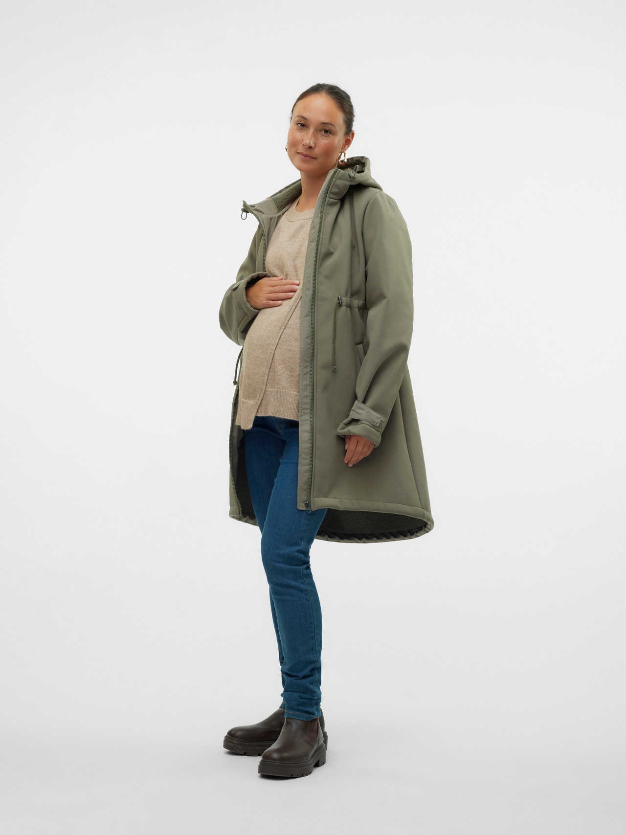 Prepárate para la nueva temporada con una prenda de abrigo 3 en 1, funcional y a la moda, para el embarazo y el posparto. Úsala para llevar a tu peque o como una chaqueta normal. Durante el embarazo, añade el panel o regula el ajuste. Durante el posparto utiliza la práctica función de transporte para tu bebé, solo añade el panel de transporte en la parte delantera y lleva un portabebé o un canguro. O bien vístela como una chaqueta normal y disfruta de un estilo cómodo y sencillo.