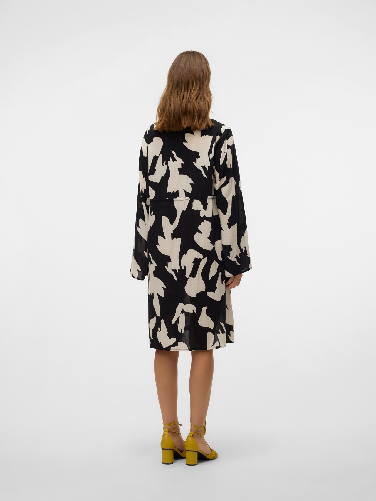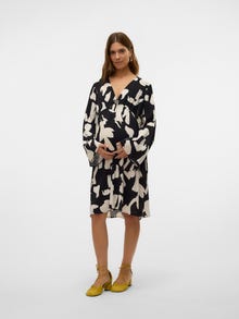 Dale vida a tu armario con vestidos cómodos y coloridos perfectos para tu embarazo, que podrás llevar en cualquier ocasión, ya sea para el día a día o los fines de semana.. - Artículo : Vestido - Cuello : Cuello en V - Manga : Manga larga - Mangas : Mangas anchas - Cierre : Cierre de cordón - Largo/talla : Largo por las rodillas - Detalles : Línea de corte por encima del vientre, Pinzas, Detalle de fruncido, Efecto arrugado - Estampado : Estampado que se repite en toda la superficie del artículo - Corte : Corte regular