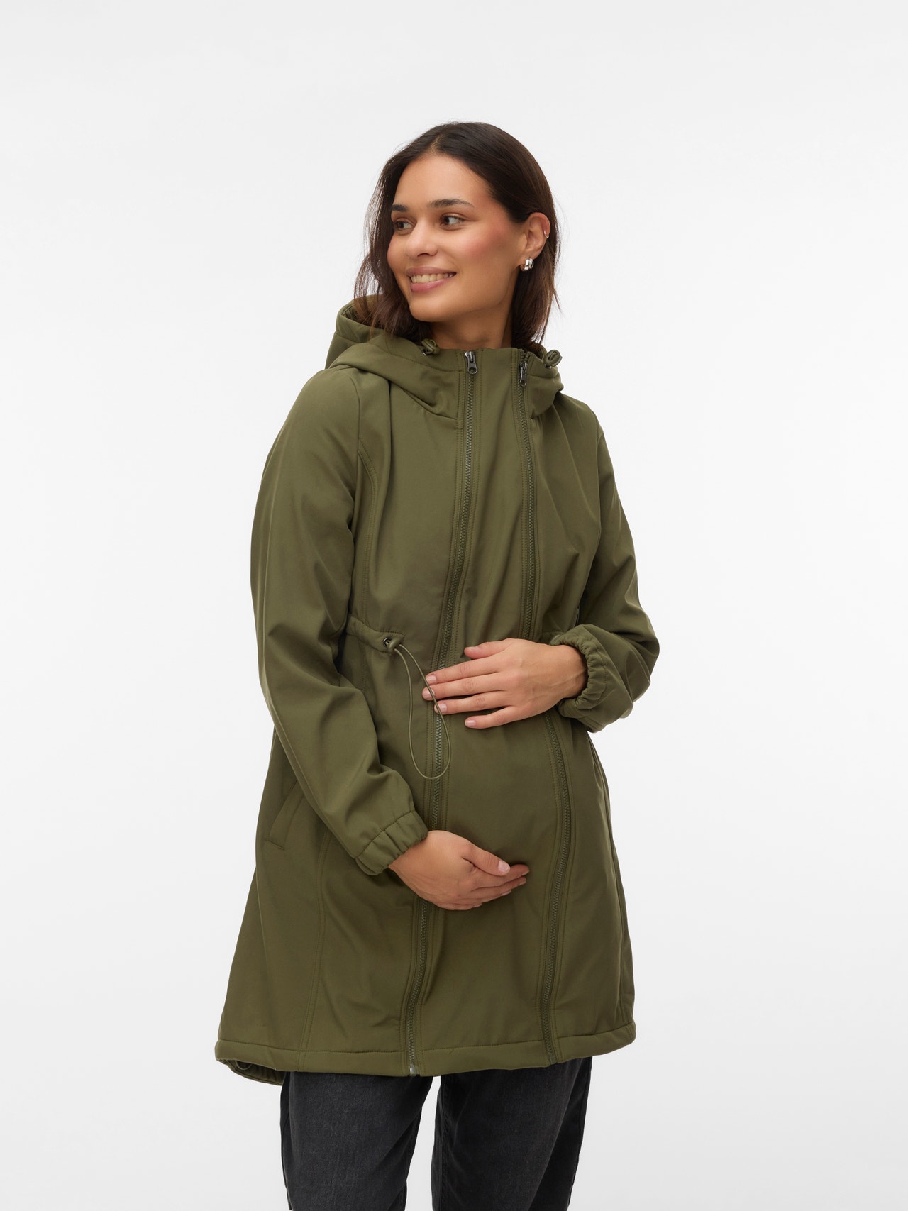 Valmistele vaatekaappisi tulevaan kauteen toiminnallisella ja muodikkaalla 3 in 1 -takilla, jota voit käyttää raskauden aikana, synnytyksen jälkeen lapsesi kantamiseen tai tavallisena takkina. Käytä raskauden aikana lisäpaneelin kanssa tai säätämällä istuvuutta; synnytyksen jälkeen voit käyttää kätevää kantotoimintoa vauvasi kantamiseen liittämällä kantopaneelin etupuolelle, jolloin saat tilaa kantoliinalle tai kantorepulle. Käyttämällä tavallisena takkina luot mukavan, selkeälinjaisen ilmeen.
