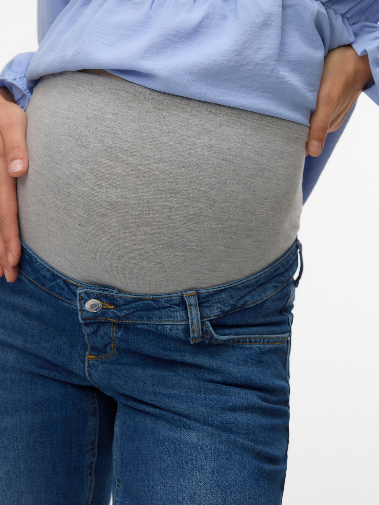 Näytä tyylikkäältä koko raskausajalle suunnitelluissa äitiysfarkuissa, jotka tukevat vatsaasi elastisella tukivyöllä.