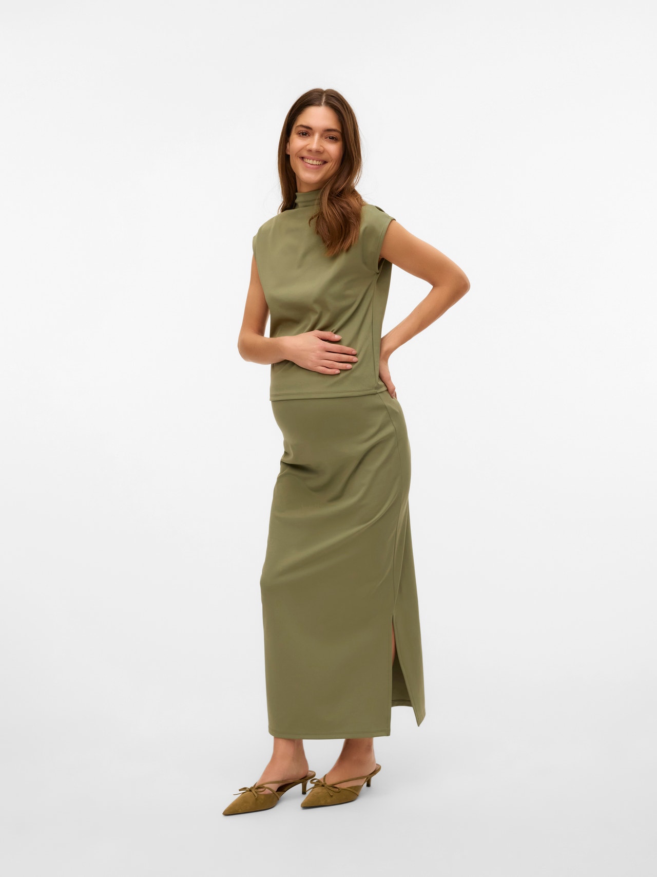 Yhdistä suosikkitoppisi ja -paitasi upeaan hameeseen, joka istuu hyvin myös raskausaikana ja luo moniin tilanteisiin sopivan, ilmavan ilmeen.