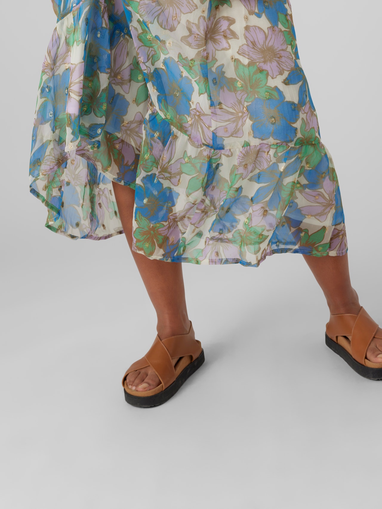 LDS MATERNITY HW MIDI SKIRT SMOCK AT WAIST SMALL FRILL DETAIL VISCOSE LINING DETAIL WITH CUTLINE AND GATHERINGS IN SKIRT MLBRIA QUALITY WITH NEW FOIL DETAIL. AOP FLOWER PRINT. Composition: 100% Polyester lining is viscose