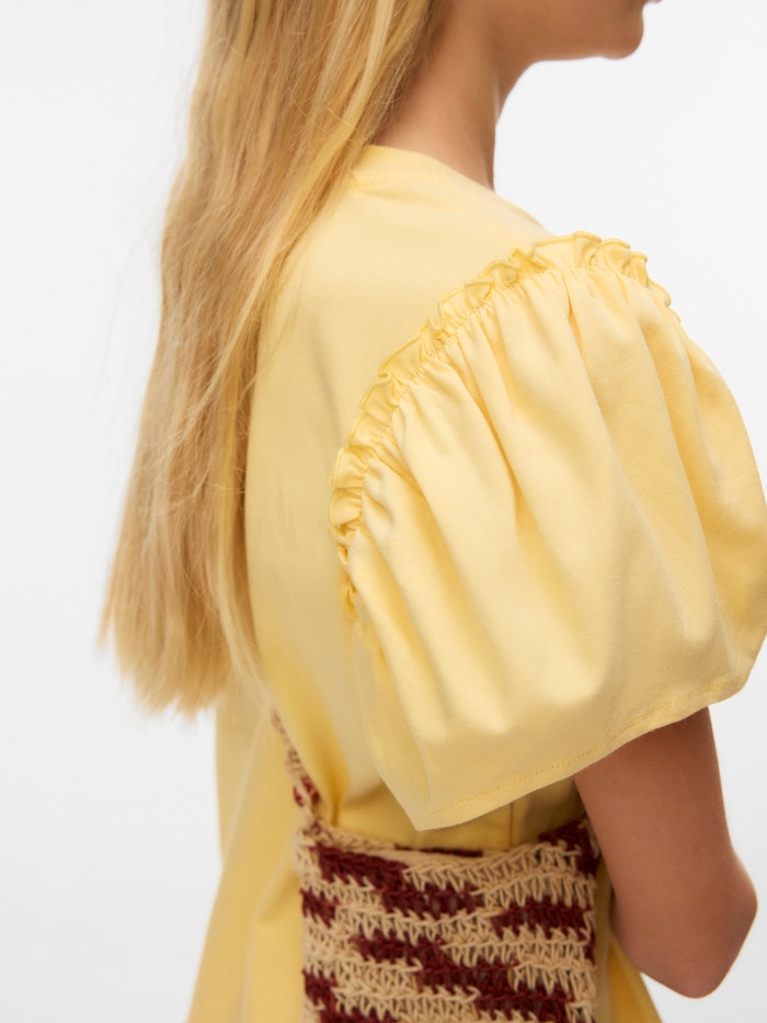 Rinnova il guardaroba di tua figlia con un grazioso top da ragazza; un elemento quotidiano essenziale che l'accompagnerà per tutta la settimana. Questo modello sta bene praticamente con tutto e aggiunge un tocco divertente..
