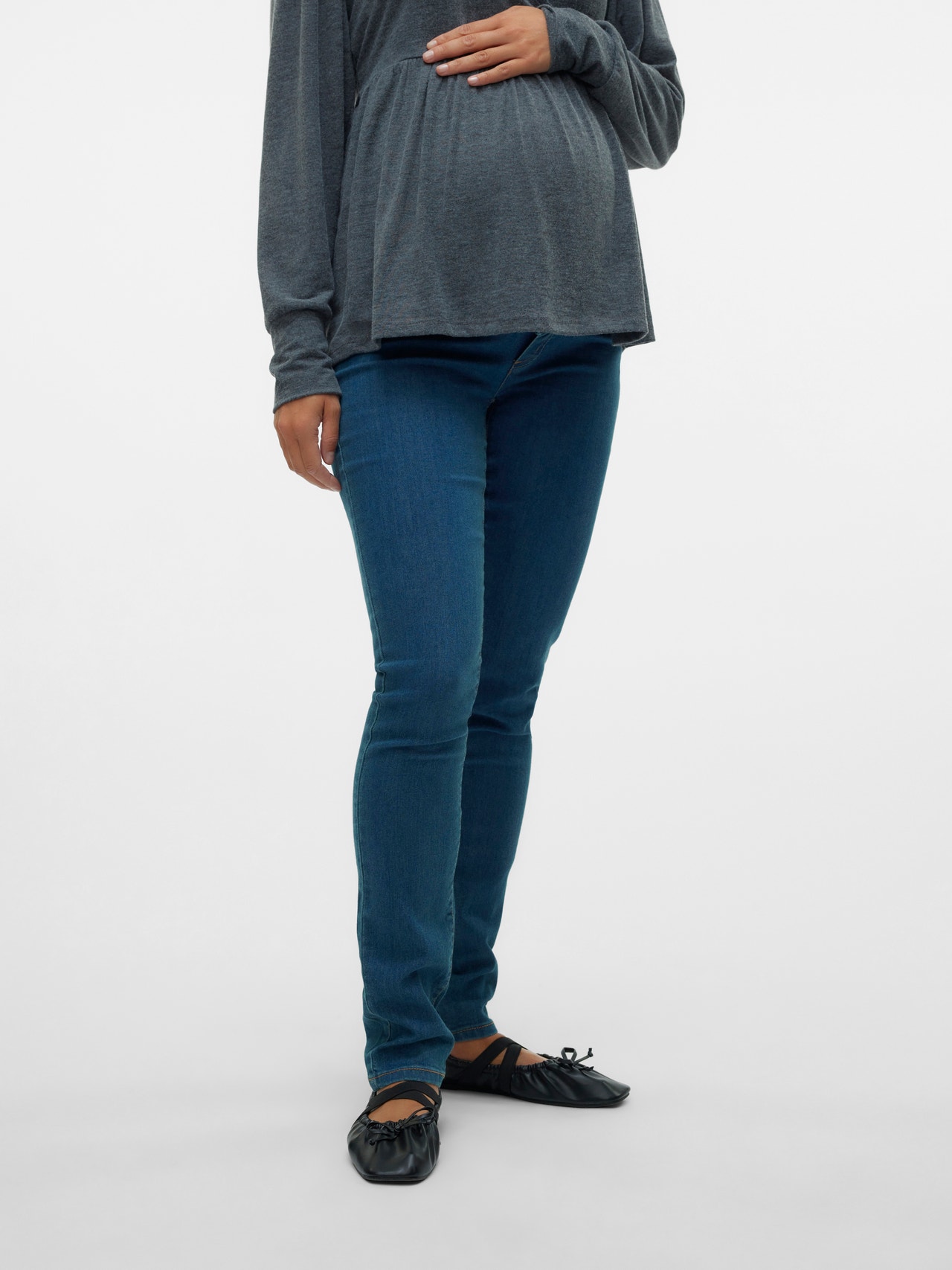 LADIES MATERNITY SLIM JEANS WITH BUMP BAND ATTACHED TO BOTTOM OF WAISTBAND. WITHADJUSTABLE ELASTIC AND BUTTONS INSIDE.