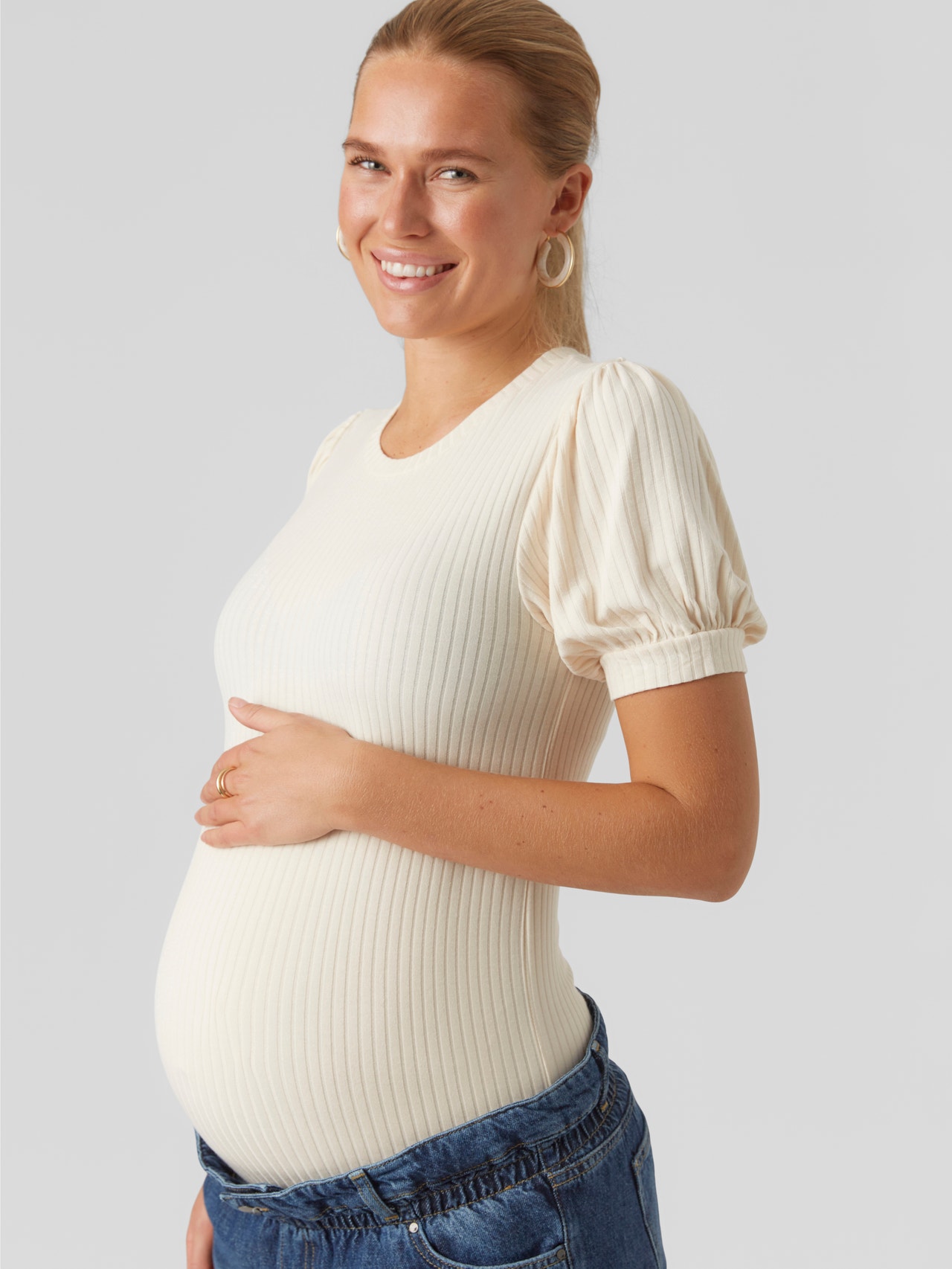 Rinnova il tuo guardaroba con con T-shirt e top morbidi e chic che assicurano comfort e una perfetta vestibilità sul pancione che cresce. - Tipologia di prodotto : Blusa - Collo : Paricollo - Manica : Maniche corte - Vestibilità : Regular Fit