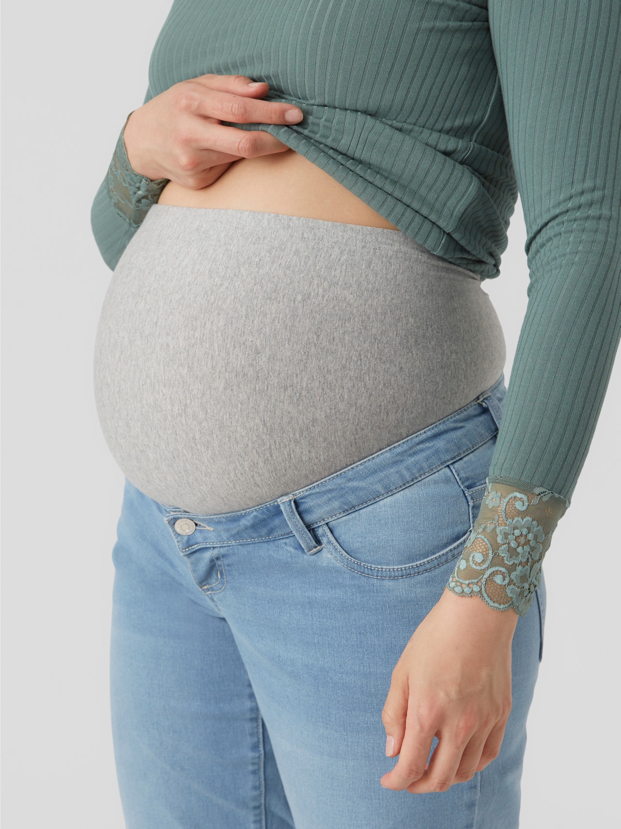 Rilassati con un paio di jeans premaman pensato per essere indossato in tutte le fasi della gravidanza e che sostiene il pancione grazie alla fascia elasticizzata.