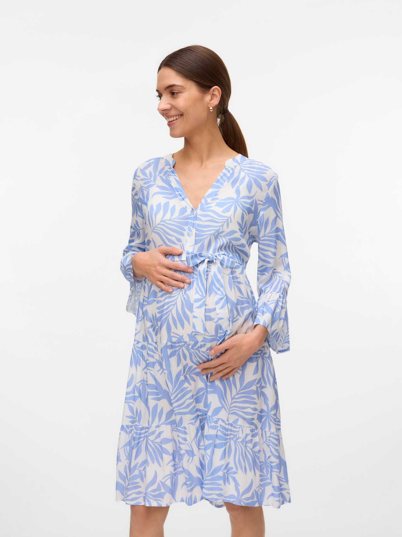 - Dettagli : Cintura in vita, Orlo stondato, Linea di taglio sopra il pancione, Pinces, Volant, Allattamento grazie a chiusura con bottone o cerniera