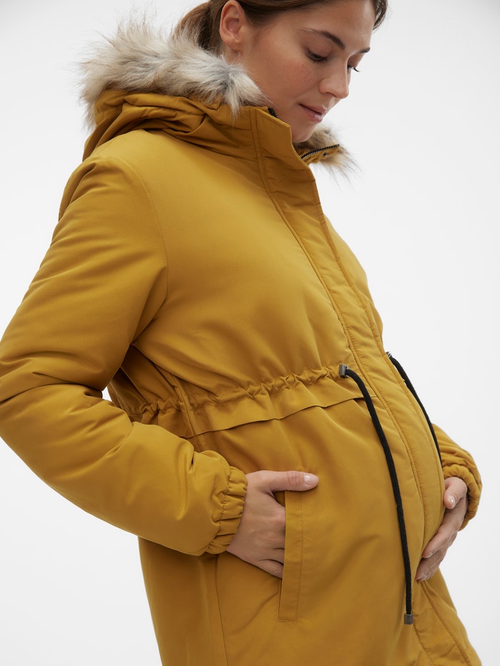 Forbered garderoben din for en ny sesong med en funksjonell og moteriktig 2-i-1 yttertøysstil for graviditet og som en vanlig jakke. Bruk den under graviditet ved å justere passformen, eller bruk den som en vanlig jakke og skap et koselig, rent uttrykk.