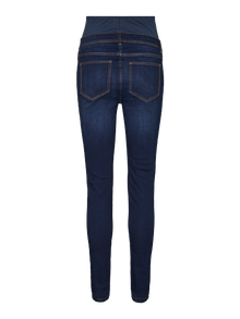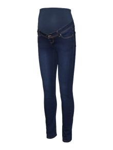Gå for en kul look i et par mammajeans som er designet for å passe gjennom hele graviditeten og støtte magen med et elastisk magebånd. - Produkttype : Mammajeans med slim fit - Lommer : Baklommer, Forlommer - Høyde til midje : Middels høy midje - Detaljer : Støttende magebånd for ekstra komfort, Elastisk linning - Vask/finish : Skånsomt vasket, mørk denimlook - Passform : Skinny Fit