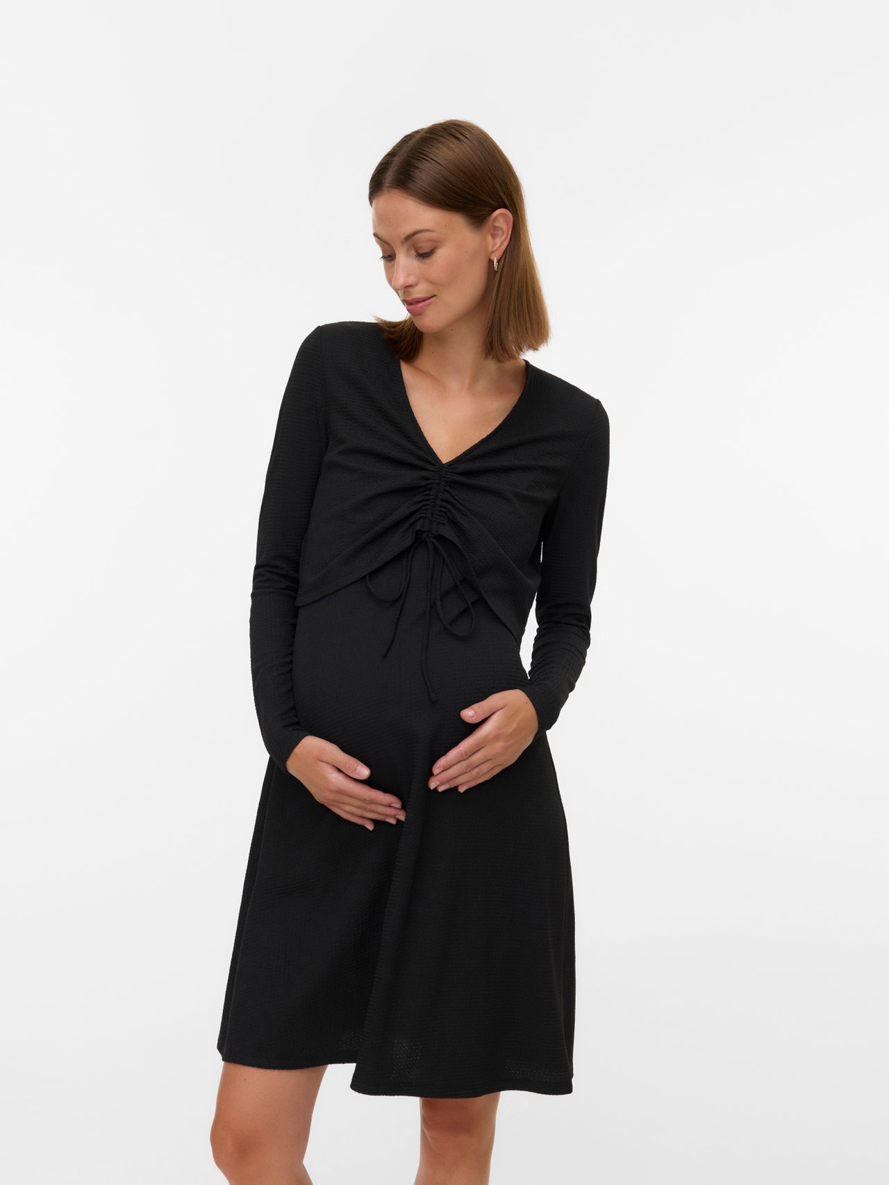 Legg til komfort og farge i garderoben med vakre 2-i-1-kjoler til både graviditet og amming. - Produkttype : Kjole - Hals : V-hals - Erme : Lange ermer - Detaljer : Ammefunksjon med skjult ammelag, Rynkedetalj - Passform : Regular Fit