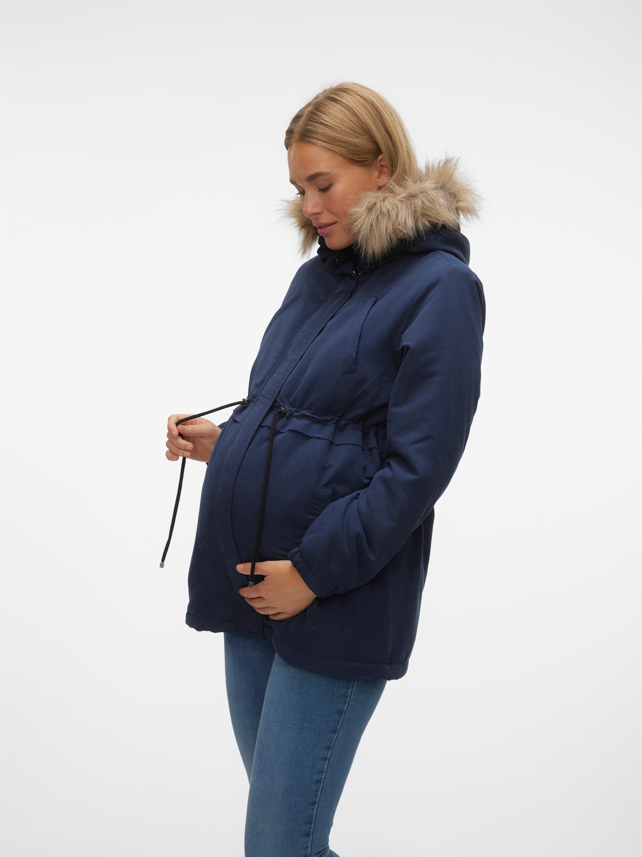 Bereid je garderobe voor op een nieuw seizoen met een functionele en modieuze 2-in-1 bovenkledingstijl voor zwangerschap en als een gewone jas. Gebruik het tijdens de zwangerschap door de pasvorm aan te passen, of draag het als een gewoon jasje en creëer een gezellige, strakke look.