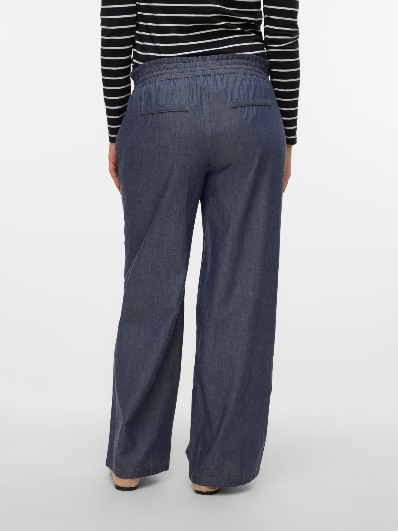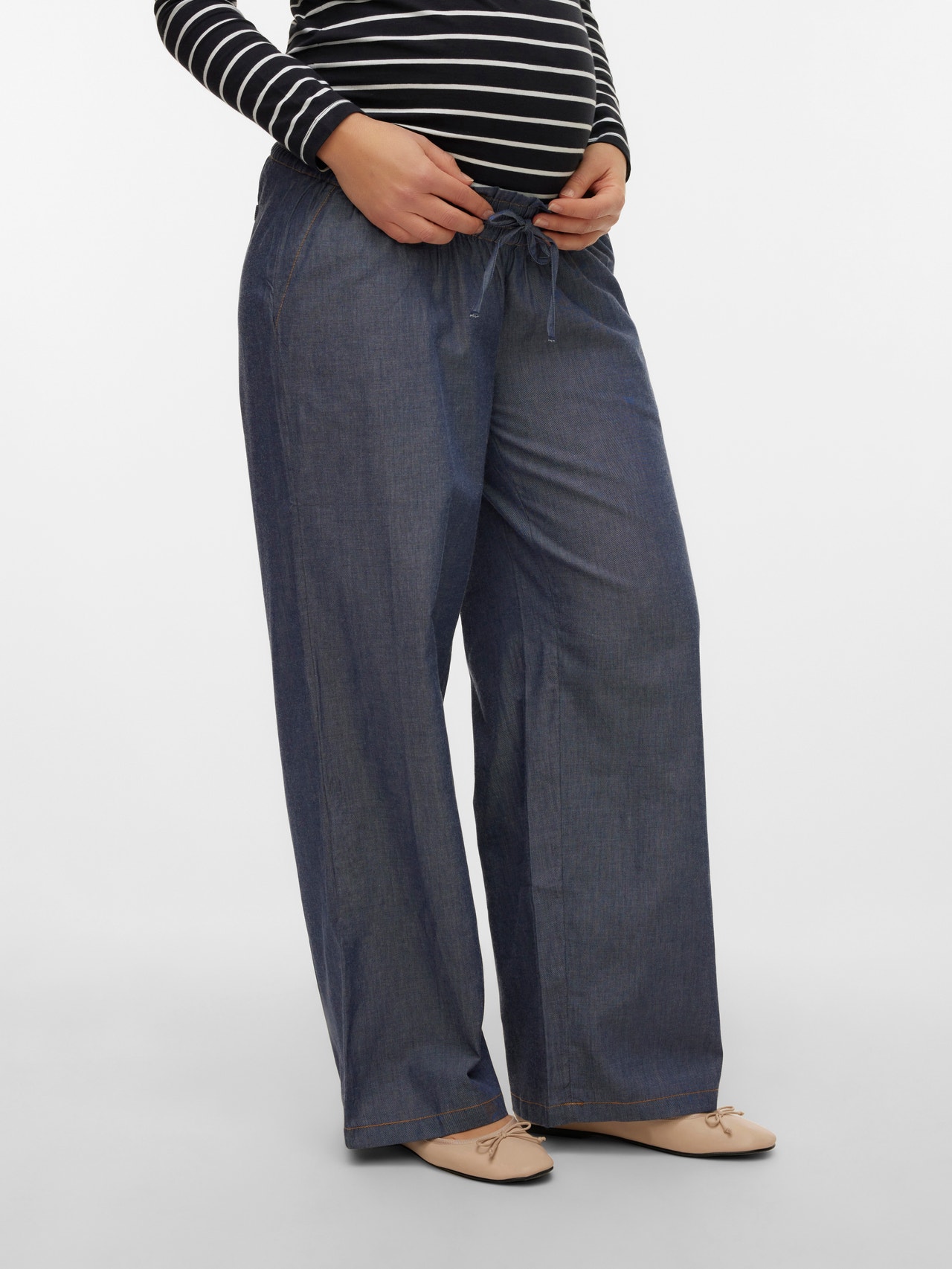 Vind de perfecte broek die in alle stadia van de zwangerschap past en die geschikt is voor zowel alledaagse activiteiten als feestelijke gelegenheden. - Producttype : Broek met wijde pijpen - Details : Elastische taille - Pasvorm : Wide leg fit