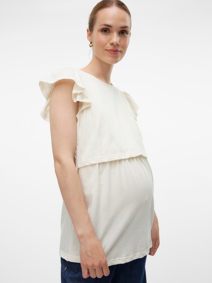 Vernieuw je garderobe met zachte en chique 2-in-1 T-shirts en tops, geschikt voor tijdens de zwangerschap en bij het geven van borstvoeding.