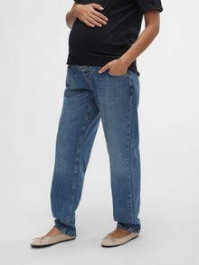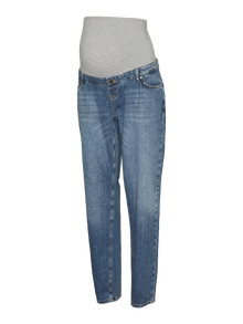 Ga voor een gave look in een zwangerschapsjeans die ontworpen is om in alle stadia van de zwangerschap te passen en je buik te ondersteunen met een elastische band. - Producttype : Boyfriend fit zwangerschapsjeans - Sluiting : Knoopsluiting, Faux gulp - Zakken : Voorzakken, Achterzakken - Taille : Mid waist - Lengte/maat : Lang - Details : Ondersteunende buikband voor extra comfort, Elastische taille, Buikband over de buik voor extra comfort en ondersteuning - Wassing/Afwerking : Mid wash voor een verwassen en gedragen denim look