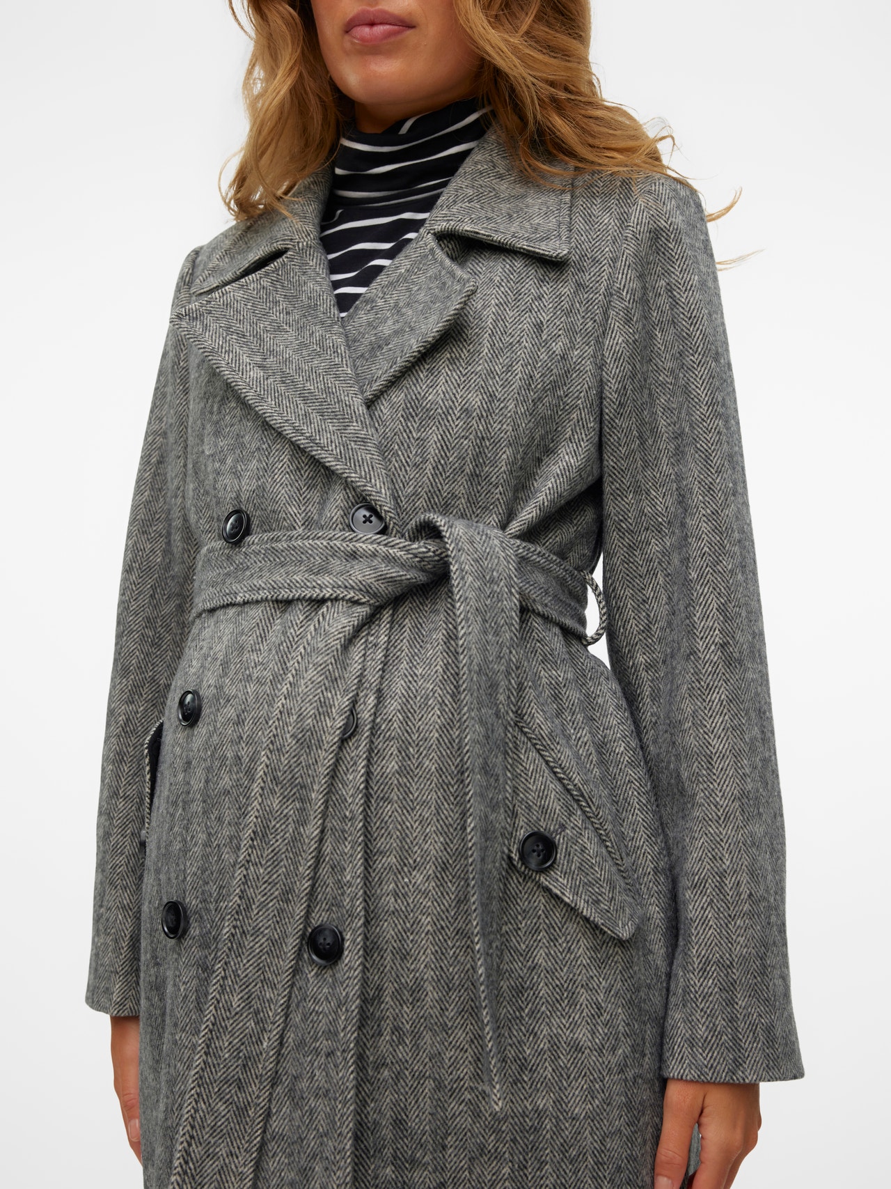 Bereid je garderobe voor op een nieuw seizoen met een functionele en modieuze 2-in-1 bovenkledingstijl voor zwangerschap en als een gewone jas. Gebruik het tijdens de zwangerschap door de pasvorm aan te passen, of draag het als een gewoon jasje en creëer een gezellige, strakke look.