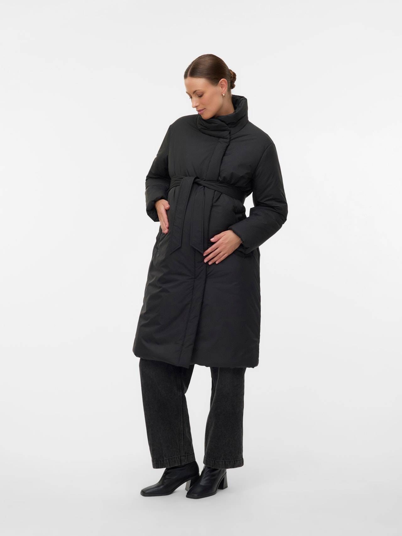 Bereid je garderobe voor op een nieuw seizoen met een functionele en modieuze 2-in-1 bovenkledingstijl voor zwangerschap en als een gewone jas. Gebruik het tijdens de zwangerschap door de pasvorm aan te passen, of draag het als een gewoon jasje en creëer een gezellige, strakke look.