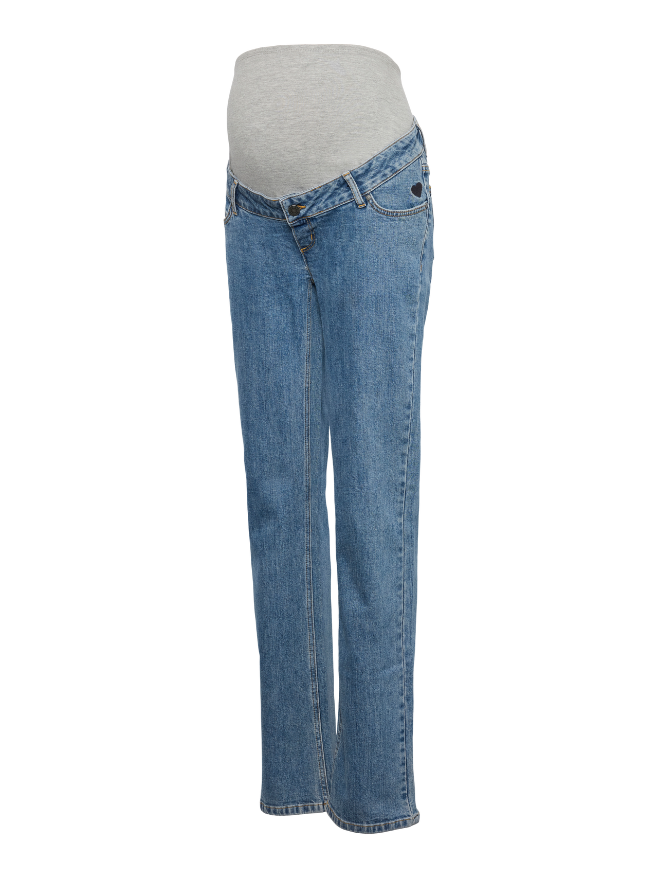 Ga voor een gave look in een zwangerschapsjeans die ontworpen is om in alle stadia van de zwangerschap te passen en je buik te ondersteunen met een elastische band. - Producttype : Straight fit zwangerschapsjeans - Sluiting : Knoopsluiting - Zakken : Achterzakken, Voorzakken - Taille : Mid waist - Lengte/maat : Lang - Details : Ondersteunende buikband voor extra comfort - Pasvorm : Deze jeans heeft een stijlvolle, straight fit.