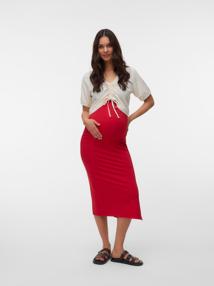 Noś ulubione topy i koszule do fajnej spódnicy, która idealnie dopasowuje się do rosnącego brzuszka i daje wygodny i lekki wygląd odpowiedni na każdą okazję.