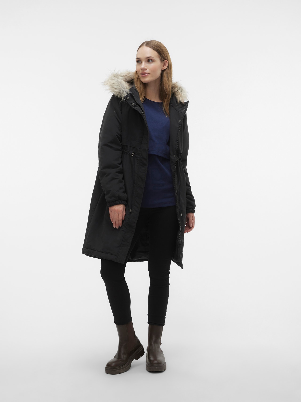 Förbered din garderob för en ny säsong med en funktionell och moderiktig 2-i-1-ytterkläder för graviditeten och som en vanlig jacka. Använd den under graviditeten genom att justera passformen, eller bär den som en vanlig jacka och skapa en mysig, ren look.